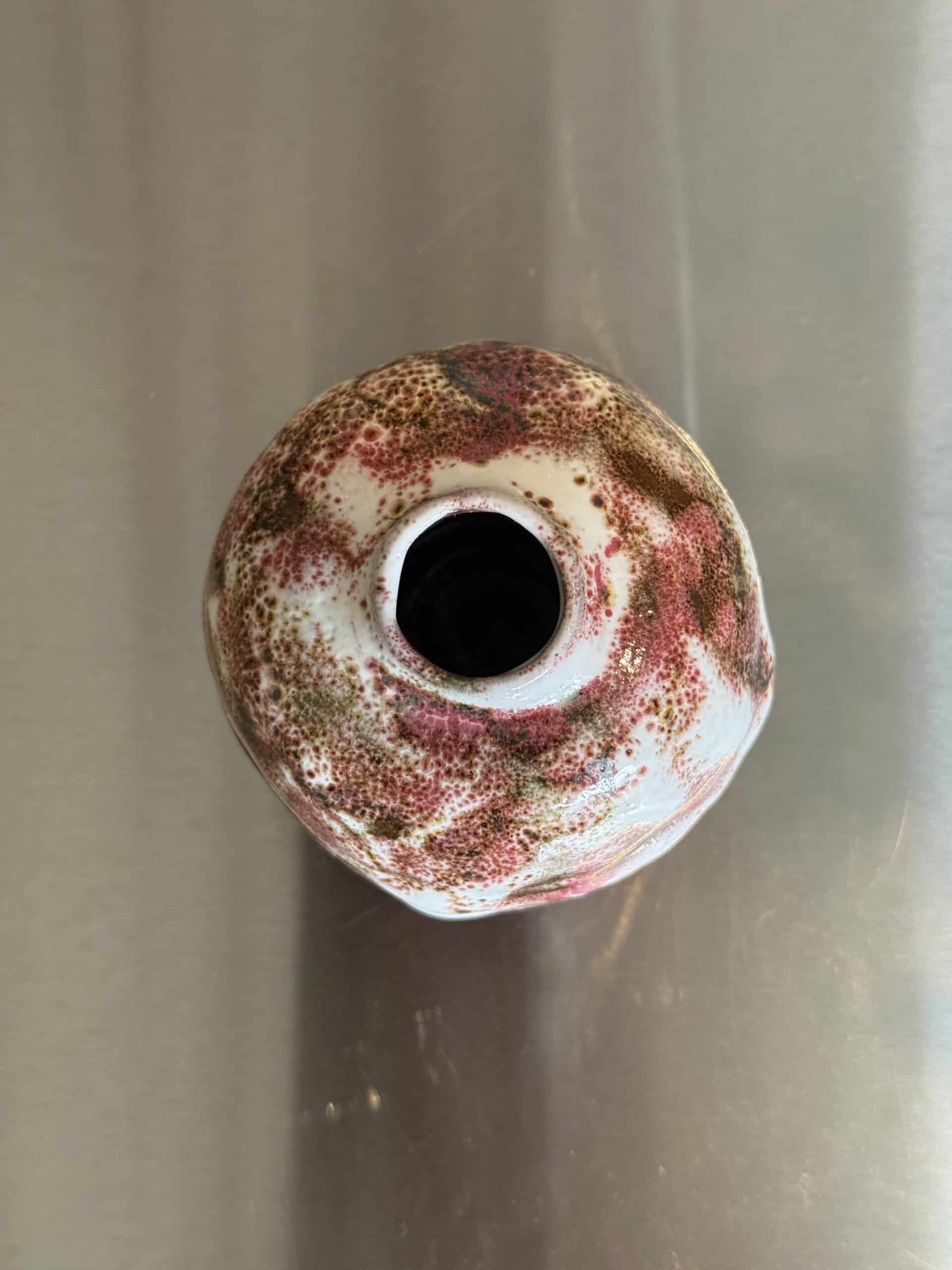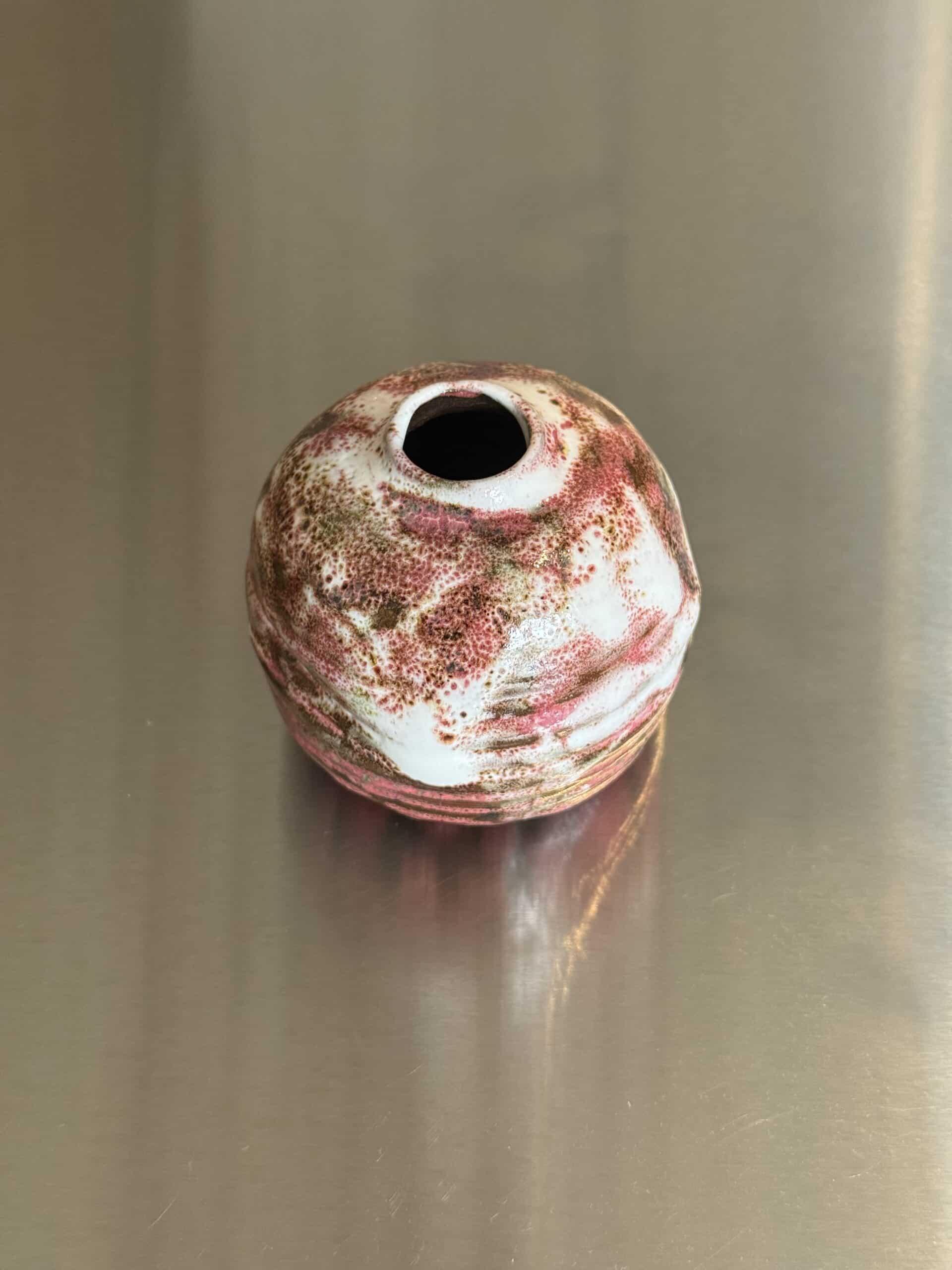 The orb is a one of a kind wheel thrown bud vase, fired in oxidation electric kiln.